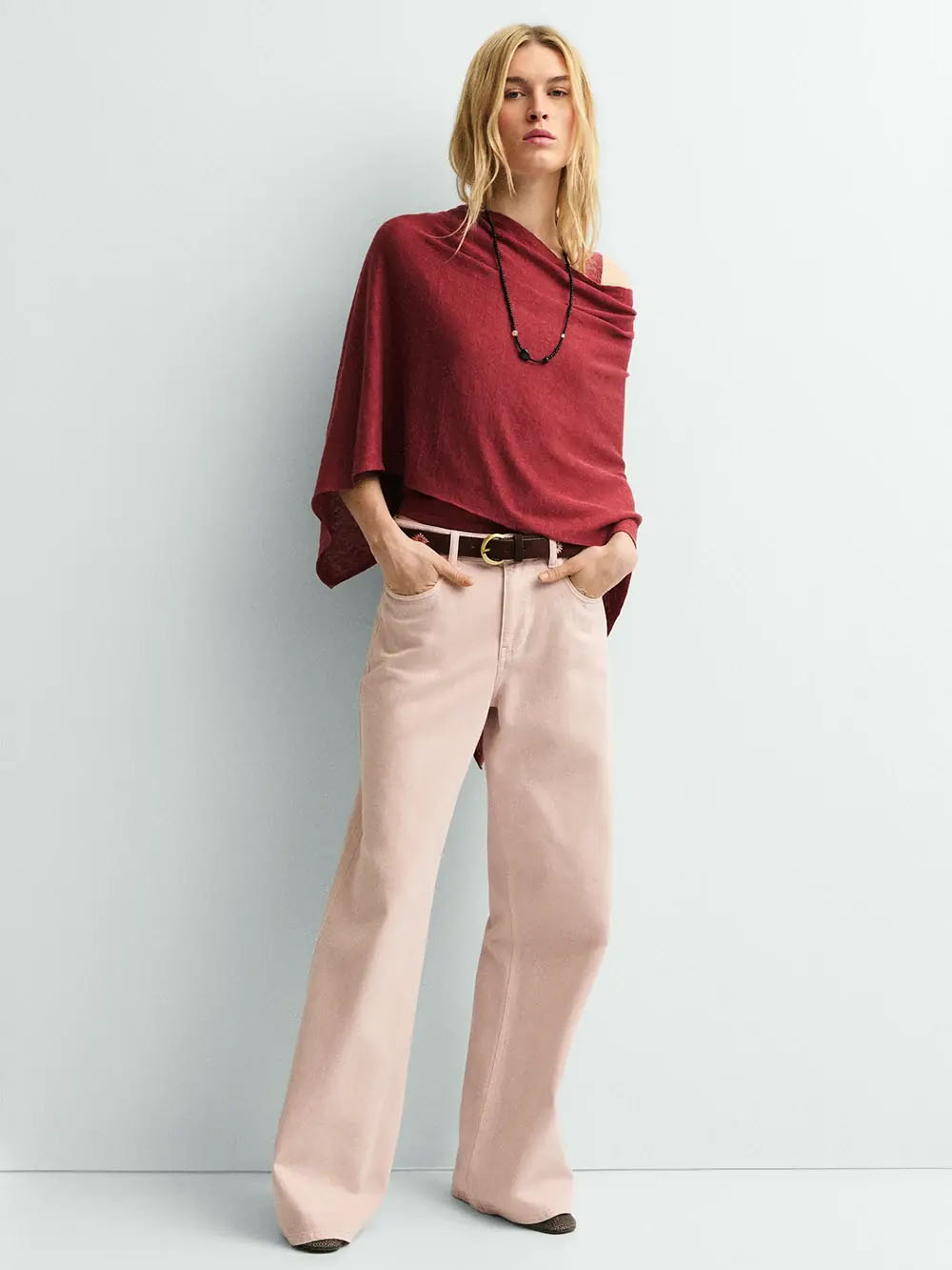 Capa de 100% lino en color terracota. Tejido ligero de galga fina. Top de tirantes a conjunto disponible por separado.