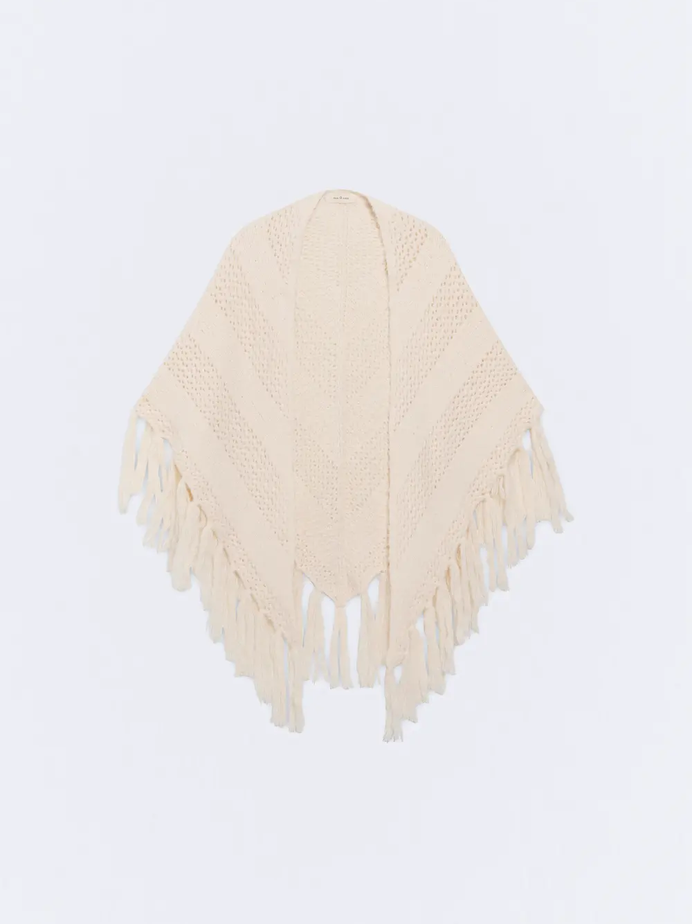 Toquilla de tricot con punto tejido. En color soja. Diseño de calados en diagonal. Medidas: 48 x 142 cm.