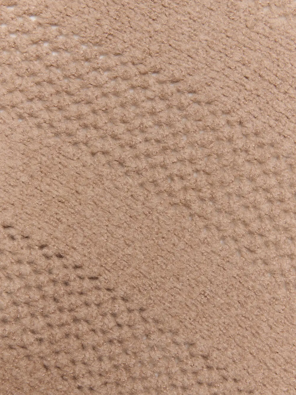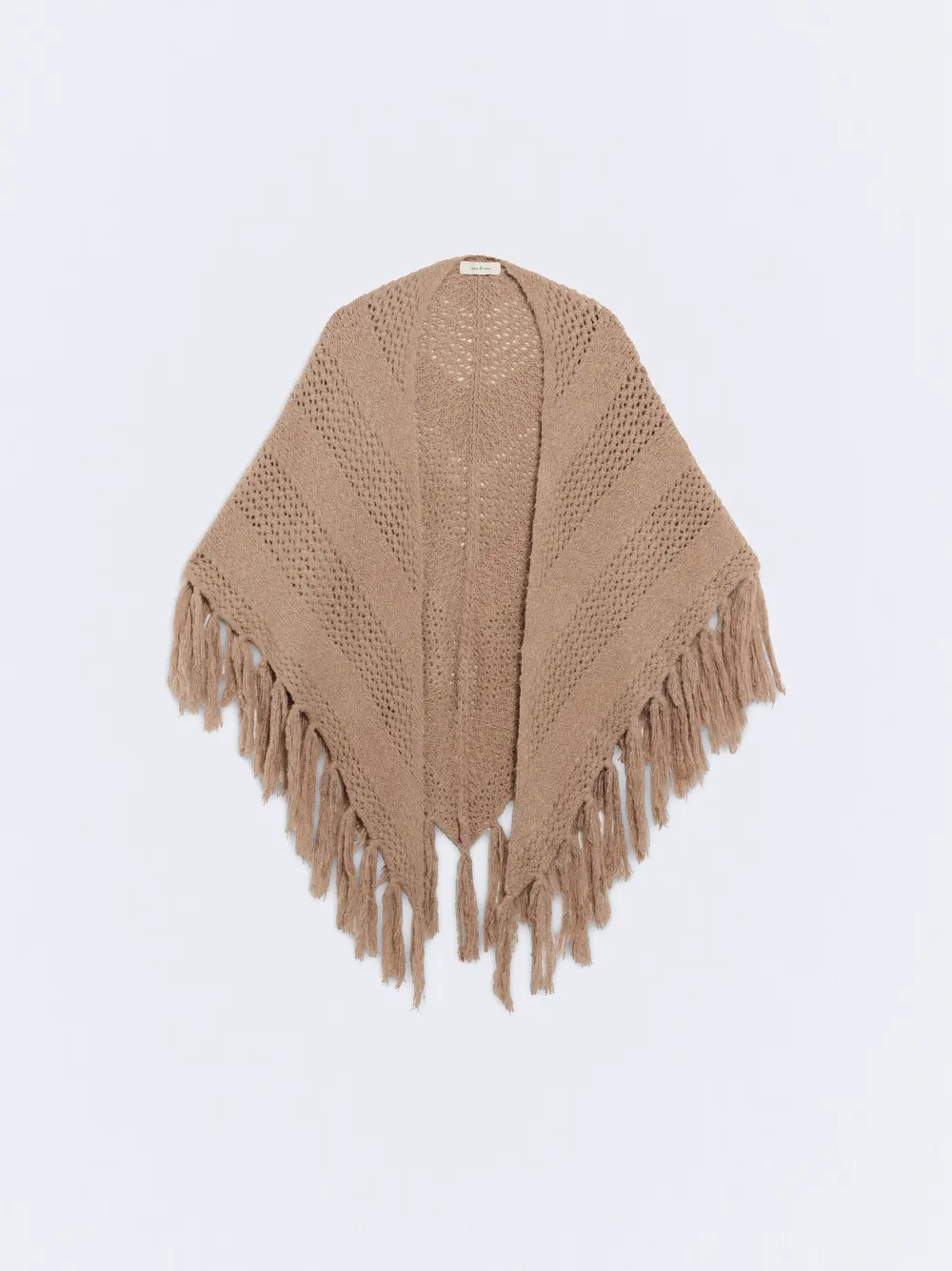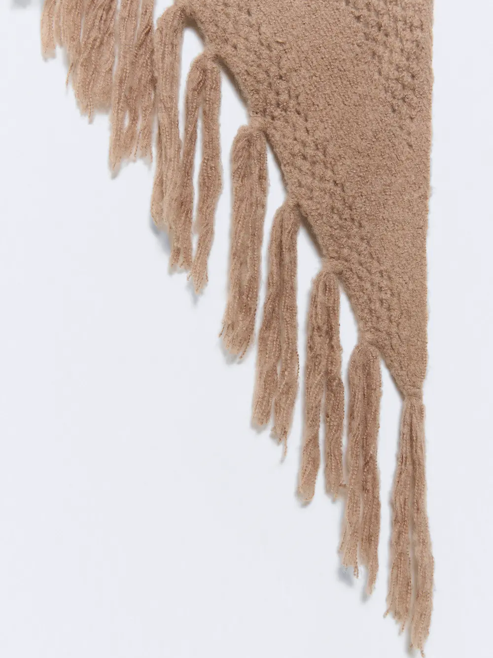 Toquilla de tricot con punto tejido. En color soja. Diseño de calados en diagonal. Medidas: 48 x 142 cm.